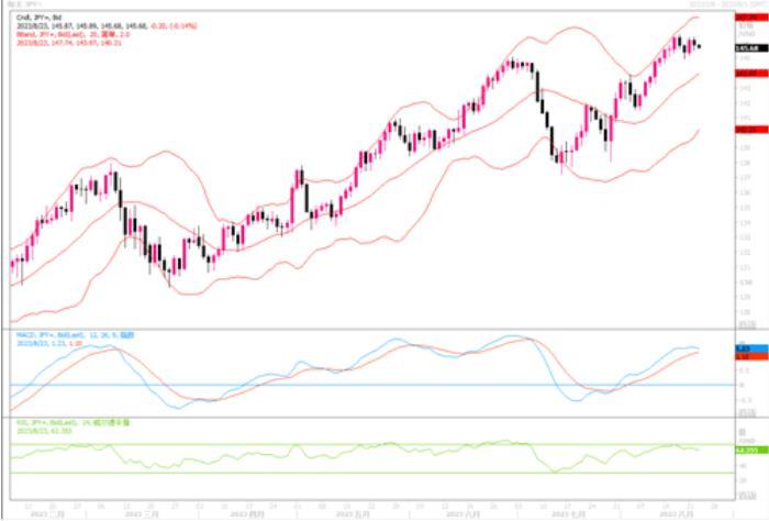 周二(8月22日),美元兑日元下跌0.24%,但距离上周触及的九个月高位不远。由于美元兑日元越来越接近上年日本央行出手干预的水平,因此交易员谨慎度继续提高,美元兑日元开启了高位震荡走势形态。就基本面来说,由于日本央行在推动其货币政策转向的行动上迟缓,退出负利率更是毫无时间表,而美元利率则有望保持高位甚至还有提升希望,两国货币利率差的持续扩大,不得不迫使交易偏向于美元,从而将套利交易模式延续下去。此前7月,被誉为日元先生的前日本财务省副大臣神原英资称,随着日本央行坚持超宽松货币政策,而美联储进一步提高利率以抑制通胀,日元可能会从当前水平上贬值10%以上。而且今年似乎看出,日本央行对于干预并不迫切。因此,美元/日元的上升空间仍可想象。短线4小时图上观察,似有双顶形成之嫌,需防范获利交易打压下的进一步回落调整风险。下方支撑仍要看145水平,若跌穿,恐怕会削弱进一步上涨动能。而如果能僵持在上述水平之上,则后市存在继续攀升至更高水平的潜能。