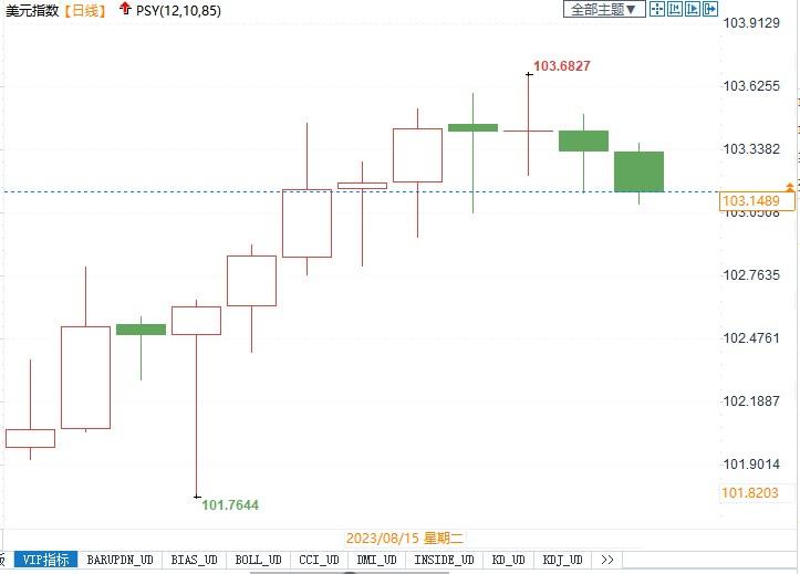 美元指数日线图北京时间8月22日14:50,美元指数报103.15