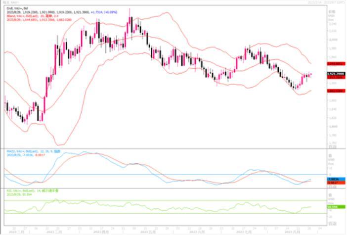 国际黄金周一(8月28日)震荡收涨,开盘价1915.21美元/盎司,最高价1925.88美元/盎司,最低价1912.60美元/盎司,收盘价1924.56美元/盎司。