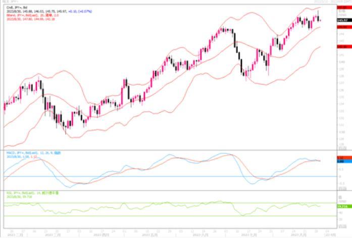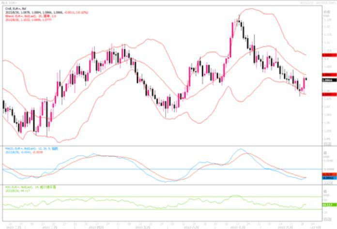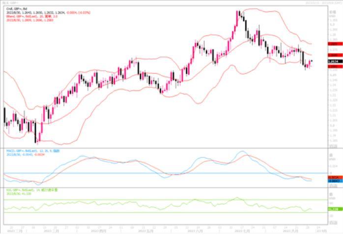 周二(8月29日),欧元兑美元上涨0.56%,报收盘于1.0880。因为数据显示美国7月职位空缺下降,7月最后一天,美国衡量劳动力需求的职位空缺减少了33.8万个,至882.7万个,为2021年3月以来的最低水平。这些数据增强了人们对美联储在即将到来的9月19-20日政策会议上不会加息的信心,投资者仍在警惕任何显示货币紧缩滞后影响的迹象。当然了,本周五的非农则是显示劳动力市场状况的关键数据,投资者们正密切关注该数据的即将到来。而周四将公布的欧元区通胀数据可能是欧洲央行是否在9月会议上加息的关键,后者将可能为欧元的近期走势定下基调。日线图上,欧元/美元整体上还处于下降通道之中,汇价也受压于布林带通道中轨线之下。只是技术指标上,MACD有形成金叉之势,绿色动能柱也开始有所收敛,显示欧元的下跌势头有所减弱并进入了调整阶段。后续走势状况则有待于看本周欧美一些重要经济数的结果了。若向上能穿破120日均线1.0920水位的压制,则有望扭转跌势。相反,则恐怕还是要继续陷入下降通道内运行。