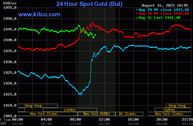 北京时间22:55,现货金价报1941.66美元/盎司。