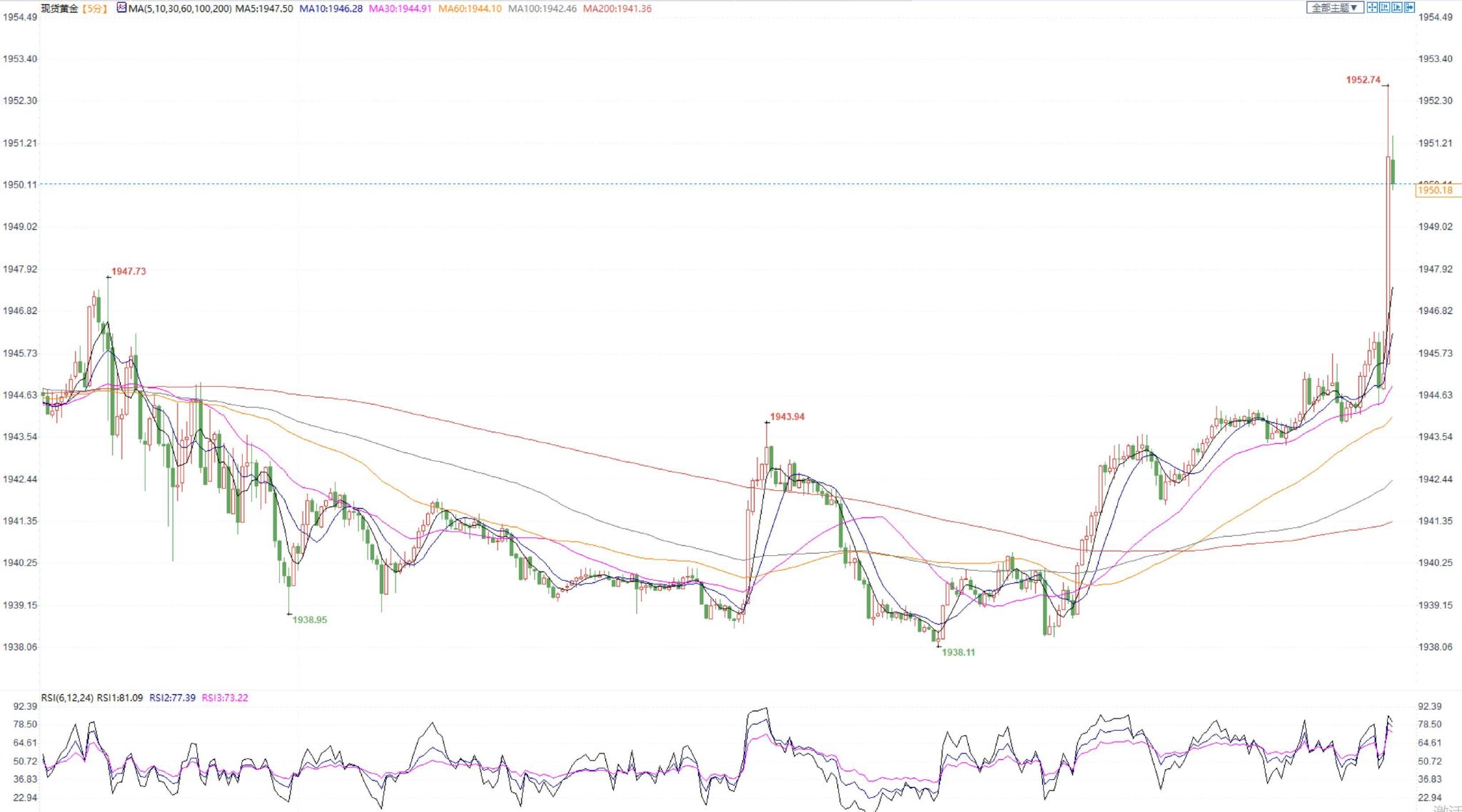 北京时间20:43 现货金价报1950.11美元/盎司。