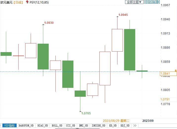 欧元兑美元日线图北京时间9月1日14:53,欧元兑美元报1.0840/41