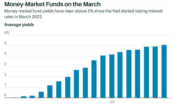 "5% 是一个神奇的数字,"克兰说。"具有心理暗示作用,资金在 5%时开始涌入货币基金。上世纪 90 年代末和本世纪初就是这样,现在也是这样。"