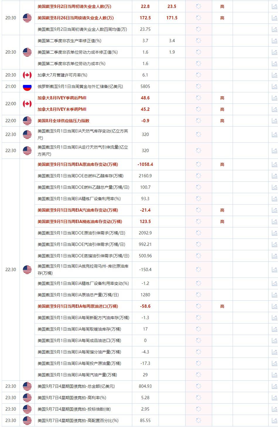20:30 美国截至9月2日当周初请失业金人数(万) , 前值 22.8 , 预期值 23.5 , 公布值:待发布