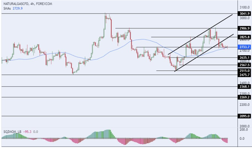 从技术上讲,天然气期货价格兑美元汇率小幅波动,并有上涨趋势,价格稳定在看涨通道下限下方,该通道被 240 分钟时间范围内的价格突破。与此同时,该货币对在 240 分钟时间范围内围绕移动平均线 50 进行交易。