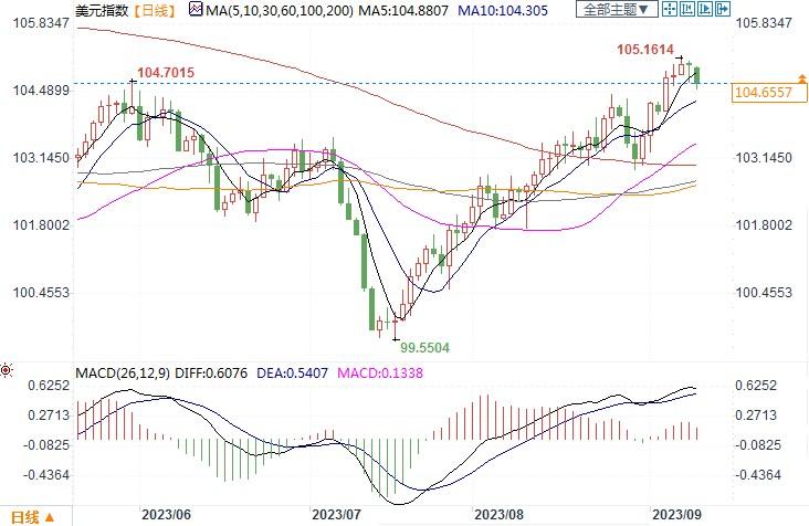 美元指数日线图北京时间9月11日14:25 美元指数 报 104.6557
