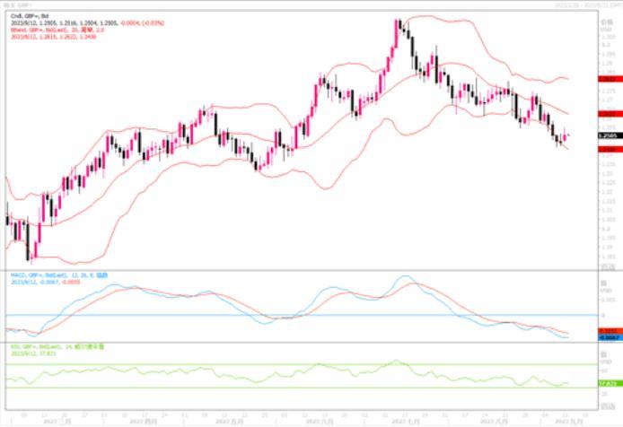 周一(9月11日),英镑兑走软的美元略上涨0.32%,报1.2510,稍稍脱离了上周创下的三个月低点 1.2445。周一英镑的回升,很大程度上是得益于日本央行进行了口头干预美元稍回软的间接提振。英国央行下周开会讨论货币政策。交易员们认为英国央行将利率上调25个基点至5.50%的可能性为70%。但他们已经降低了此后再次加息的机率,这与一周前的情况大相径庭,当时货币市场显示英国利率预计将在3月前达到接近5.7%的峰值。今年英镑之所以强韧,部分原因在于人们认为英国央行在降低通胀方面还有很多工作要做,因此需要比许多其他央行更多地上调利率。但随着进来英国经济发展的数据显现不良之后,众多著名机构分析认为,英国加息似乎已经到了尽头,未来几周英镑可能难以获得太多的上涨动力。日线图上,英镑/美元继续承压短期均线下方,整体趋向偏弱势。当前低点1.2445的支撑较为关键,若跌破,镑美将继续探低。上方只有穿破1.2750,或才能有望扭转近期跌势。