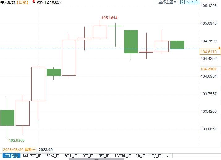 美元指数日线图北京时间9月14日12:05,美元指数报104.61