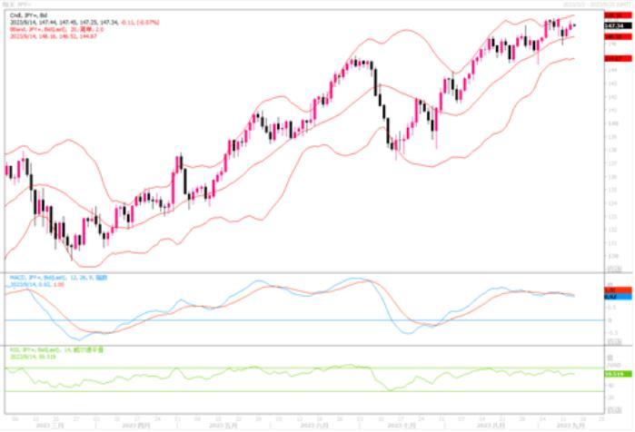 周三(9月13日),美元兑日元上涨0.27%,报147.45,日元继续回吐周一的大幅涨幅。隔夜美国8月份总体通胀率仍显增长,令美债收益率继续保持攀升的势头。近期10、20年期美债收益率分别逼近4.26%、4.53%高位,进一步碾压日元债券收益率。而日本央行至今迟迟在利率上保持超级宽松,货币政策上仍无所作为的表现,更是直接给到日元压力而不断走贬。美元/日元尽管担心日本央行的潜在干预措施,但正在缓慢走高。日线级别图上,最近的有效阻力位位于148.00 – 149.00范围内。美元/日元将需要更大的催化剂才有可能推动美元尝试朝149-150价格区域逼近。但纯从技术指标来看,顶背离迹象逐渐明显,要时刻警惕防范变盘的发生。