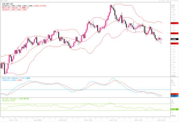 周三(9月13日),欧元兑美元下跌0.22%至1.0730。美国劳工部的数据显示,由于汽油价格急升,上个月消费者物价指数(CPI)增长0.6%,为2022年6月以来的最大增幅。剔除波动较大的食品和能源部分,核心CPI增长0.3%,增幅因二手车和卡车价格下降而有所放缓。该数据未能影响美联储将在下周9月19-20日会议结束时宣布维持利率不变的观点。但是对于11月份会否继续加息,市场上的预测意见产生分歧。也就是说还不能排除年内美联储将再加息一次的可能性。为此,美元指数周三仍然保持在近期的高位区域。日内,欧央行将召开利率会议,如果欧央行维持利率不动,那么势必降低今后继续加息的押注,欧元将会遭到冲击。相反若欧央行加息25个基点,则欧元/美元或能得到一定的抬捧出现反弹性的上升。日线图上,纯从各类技术指标来看,似有底背离产生的痕迹,MACD信号线有形成金叉的迹象。要提放短线超卖调整反弹的风险。就整体而言,欧元/美元仍处在布林带中轨之下,维持着完好的下降通道形态。