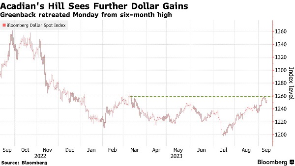 Hill预计,美元兑许多其它货币将再上升5%,触发主因将是美联储可能会暗示将在10月31日至11月1日的会议上进一步加息。Hill正在为这样的情况做准备,看好美元兑澳元、纽元和加元以及日元。
