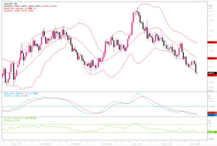 周四(9月14日),欧元兑美元下跌0.89%,报1.0635美元,盘中曾跌至1.0629美元,为3月17日以来最低水平。欧洲央行周四将其关键利率上调至4%的纪录高位,但表示这很可能是其在长达一年多的抗通胀斗争中的最后一次行动,因为会后欧洲央行总裁拉加德发表讲话说,如果我们将利率维持在当前的水平一段时间就会奏效诸如此类的话,给出的暗示意味很强。而于此同时,晚些时候美国公布的申请失业救济人数、零售销售、整体PPI等数据均强于预期,这对美元来说像是双重提振。即便9月份美联储维持当前联邦激进利率水平不动,相对欧元而言,在息差方面仍保有优势。更遑论美国经济发展比之欧洲显示出的更强韧性。日线图上,欧元/美元继续破位下行,前行的目标有可能将瞄向今年3月份见过的低点1.0516。短时间内,即便欧元有反弹修整,预料幅度都将是有限的。