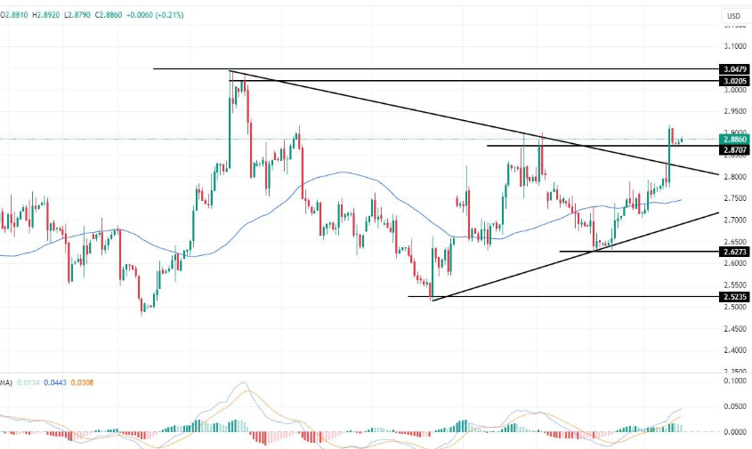 一方面,如果天然气价格上涨,阻力位将分别集中在3.020和3.047。另一方面,如果天然气价格下跌,其目标支撑位将分别集中在2.787和2.700。
