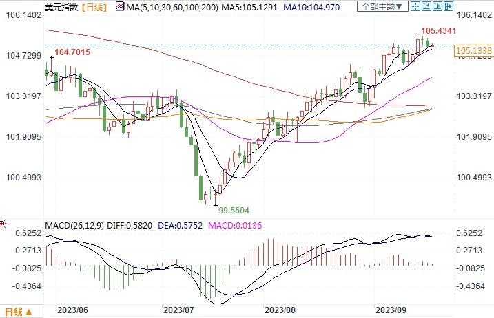 美元指数日线图北京时间9月19日12:12,美元指数报105.14