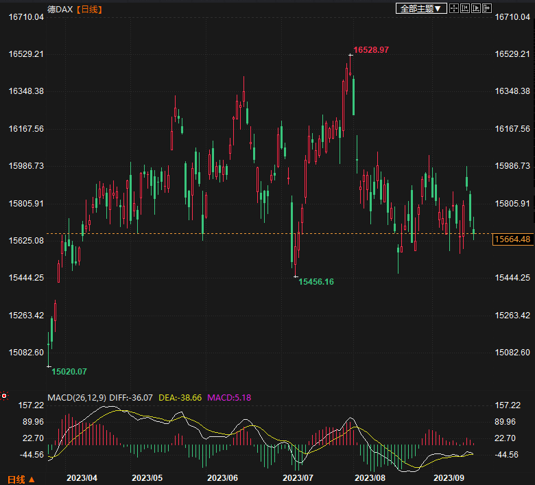 德国DAX30指数收盘下跌62.64点,跌幅0.40%,报15664.48点;