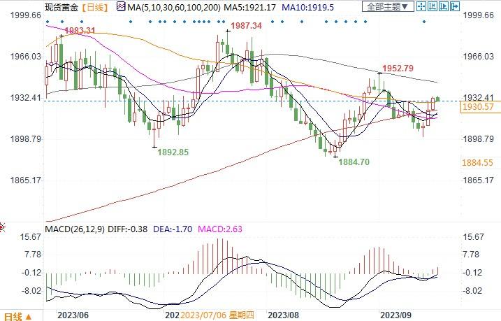 现货黄金日线图北京时间9月19日15:28,现货黄金报1932.24美元/盎司