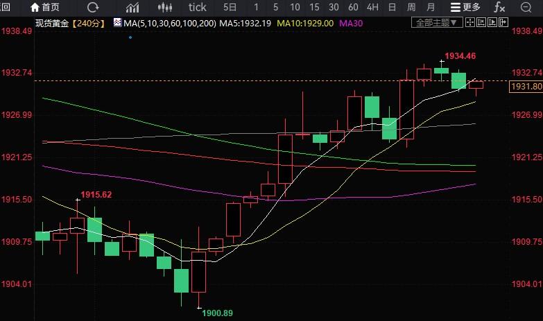 (现货黄金4小时图)