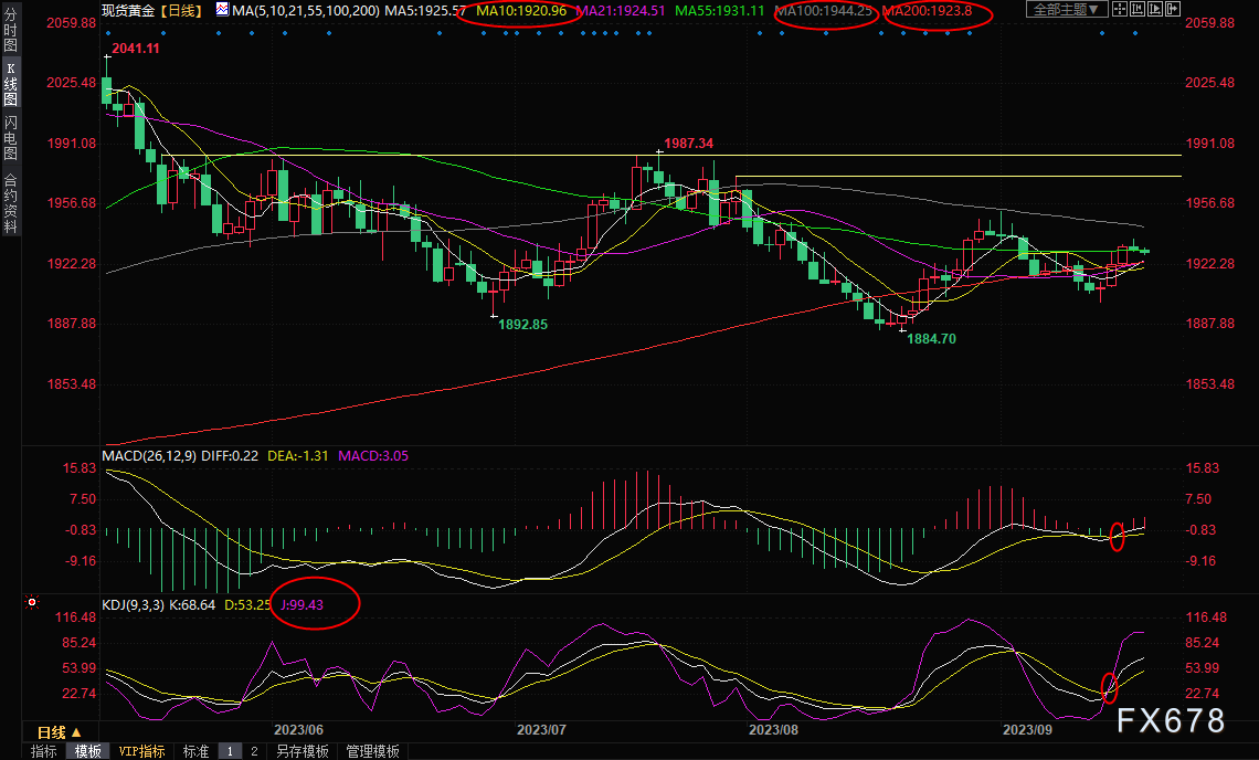 由于均线交织,KDJ的J值也发出了短线超买信号,短线走势变数较大,若回落至10日均线1920.92下方,则削弱后市看涨信号;进一步支撑分别参考1910关口和1900关口。