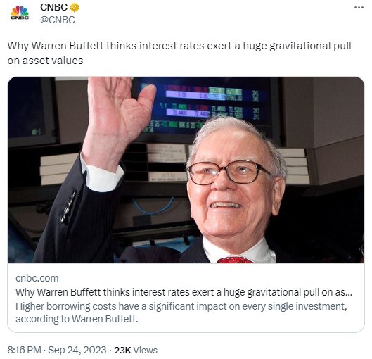 “一切都基于利率,这是一个巨大、巨大、巨大的引力,影响着我正在做的事情,”巴菲特阐述道。