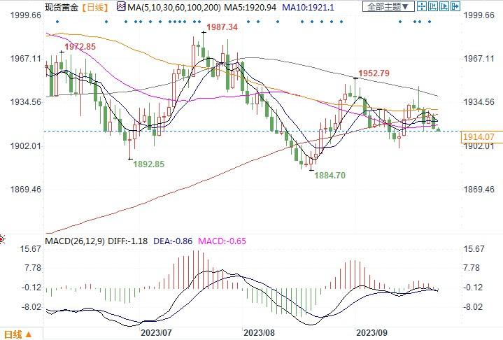 现货黄金日线图北京时间9月26日10:46,现货黄金报1914.07美元/盎司