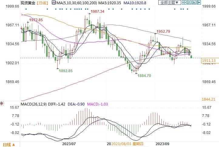 现货黄金日线图北京时间9月26日16:17,现货黄金报1914.25美元/盎司