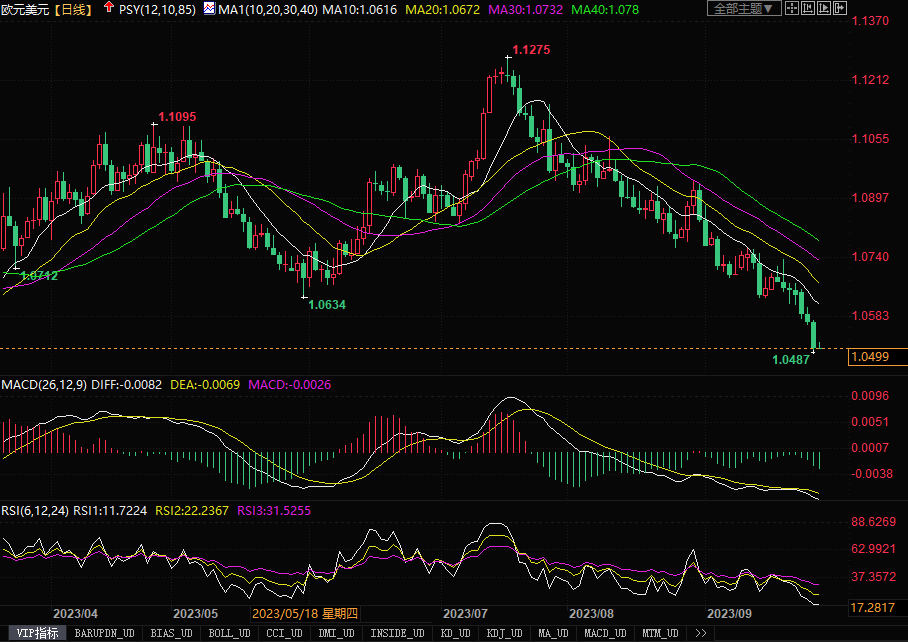 周三(9月27日),美元兑一篮子主要货币创下10个月新高,推动欧元创下近九个月新低1.0488美元,自今年1月份以来首次低落于1.05水平之下。周三的数据显示,8月美国耐久财订单增加,因机械和其他产品订单增加抵消了民用飞机订单下降,企业设备支出在第三季度初下滑后似乎重拾动能。周三,指标10年期美债收益率继续上升,创下2007年10月以来最高。为此,投资者继续押注美国经济将在高利率环境下跑赢竞争对手,使美元获得持续稳固买盘的推动。而欧洲央行周三在公告中表示,8月企业部门信贷同比近增长0.6%,低于7月份的2.22%的增速,家庭的借款增速也从1.3%放缓至1%。越来越多的证据表明欧洲央行的历史性加息行动在抑制经济活动。因此,欧央行继续加息的空间恐将变得极其有限。无论在利率息差还是经济发展前景方面,相对美元来说,欧元劣势尽显。当前该货币对的交易恐怕要进入短线小幅调整体则继续探低的节奏里。