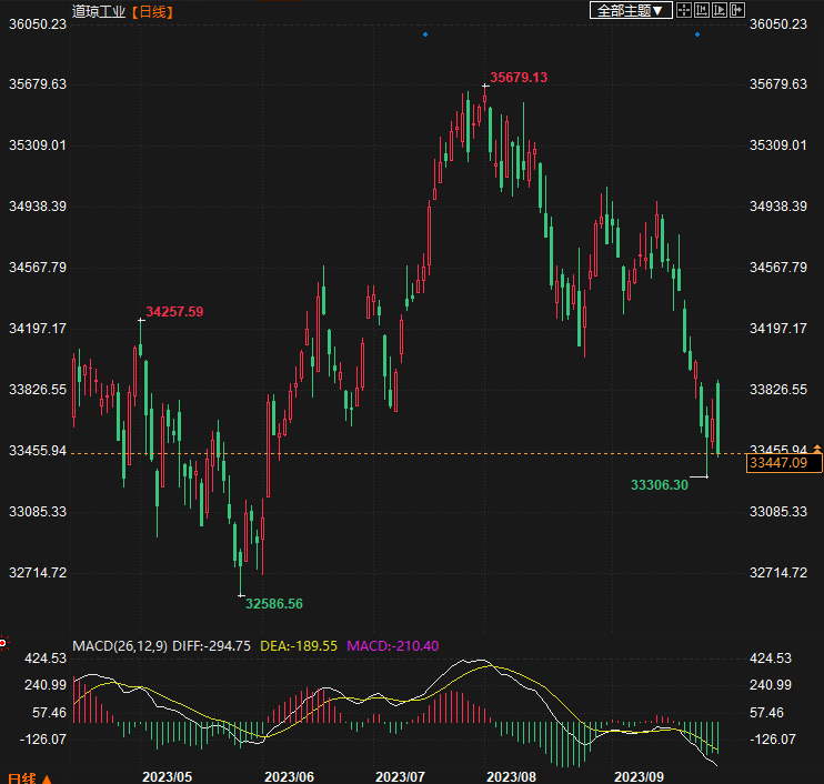 周五(9月29日),由于投资者期待艰难的9月结束,道琼斯工业平均指数回落。截至发稿,道琼斯工业指数下跌156点,即0.5%,其中Travelers Companies和沃尔玛领跌。标准普尔500指数下跌0.3%,纳斯达克综合指数上涨0.2%。