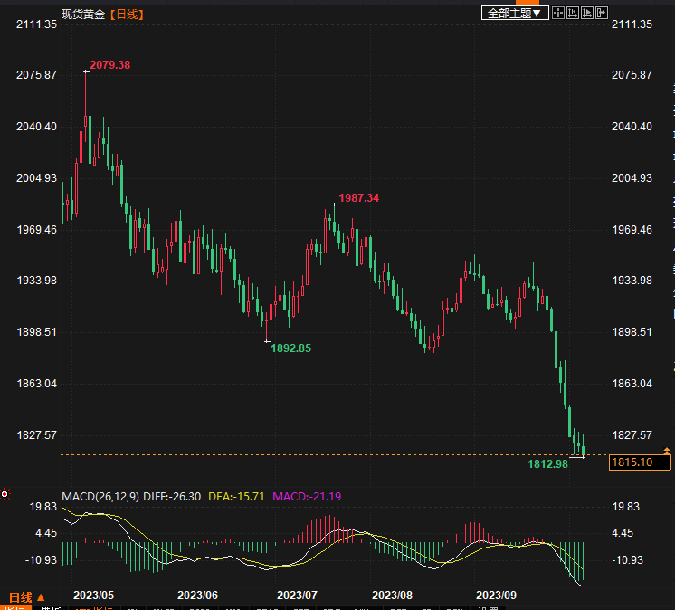 金价周三录得自2016年以来最严重的跌势,连续第八个交易日下跌,因美国利率长期保持较高水平的可能性打压市场情绪。