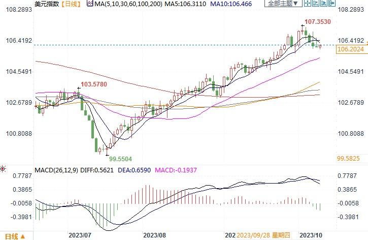 美元指数日线图北京时间10月10日14:56,美元指数报106.20
