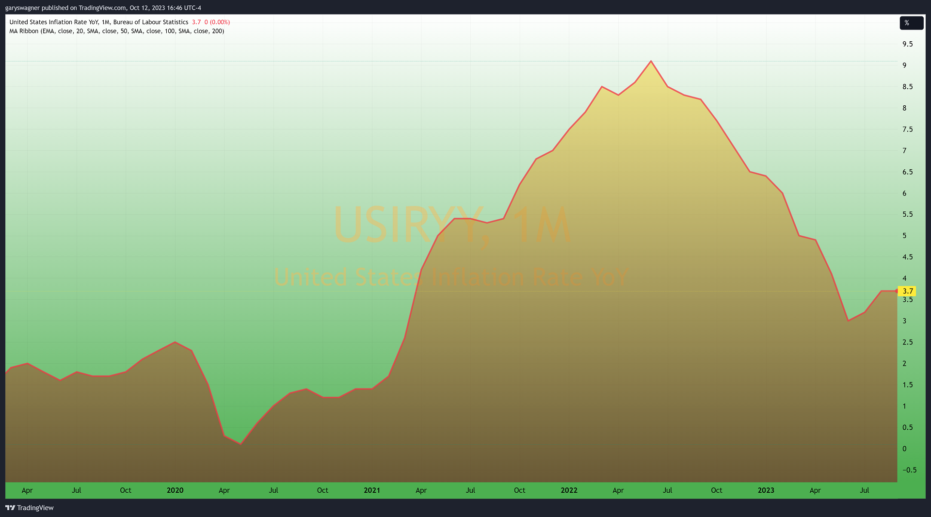 CPI报告显示,9月总体通胀率的上升速度高于普遍预测。市场共识预测CPI为3.6%,略低于劳工统计局报告的3.7%。对核心通胀的预测准确,预计不包括食品和能源的核心通胀将同比增长4.1%。