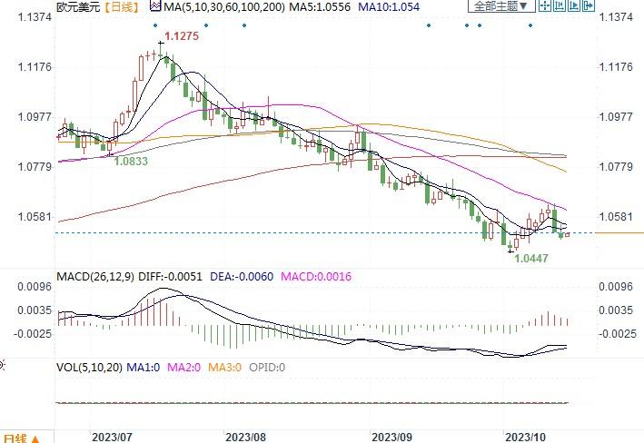 上周五(10月13日),美元兑一篮子货币周五触及一周高点至106.63。欧元/美元继周四大跌之后,周五继续下滑0.2%,收盘在1.0509,盘中最低至1.0494。美国上周反映通胀的数据增长情况仍旧超出预期,导致美指标十年期债券收益率回升,提高了美联储仍有加息一次预期的概率。从而推进美元保持坚挺。此外,中东冲突不断升级,以色列军方称首次对加沙发动地面攻击。避险买盘也是导致美元重新走强的一个重要的推动因素。在风险厌恶情绪提升的情形下,欧元似乎也就没什么值得购入的理由。技术图形上,10日和21日移动均线小幅下滑,波林带通道区间亦然,再次出现负面信号--目标指向10月和年内低点1.0448。10月高位1.0640仍是关键阻力位,若突破将结束下行趋势。而下方1.0496-1.0500是初步支撑区域。