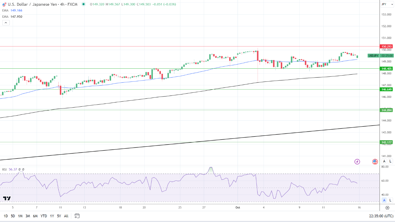14-4小时RSI的56.37表明,美元/日元突破150.293阻力位,然后进入超买区域。