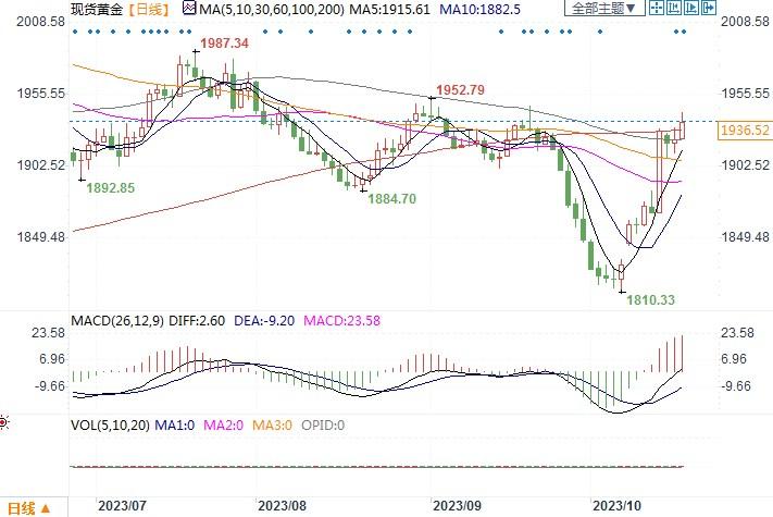 现货黄金日线图北京时间10月18日11:20 现货黄金 报 1935.75 美元/盎司