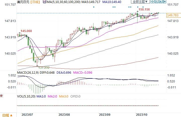 周三(10月18日),美元/日元去至两周高点149.92,离警戒水平150近在咫尺。令投资者意外的是,日本央行却宣布购买20亿美元债券,以保持收益率的下行压力。投资者非但未看到日本央行出面干预日元汇价,反而对美元的走升给予了助力。而最根本的是,美债收益率更加坚挺,10年期美债收益率报4.939%,处于周期高位,日美利差扩大终将继续支撑着美元表现强硬。但是,由于在149-150区间近两个交易日有大量保护性期权到期,或能一定程度上短暂帮助抑制日元的进一步走软。目前美元/日元波幅极度偏窄,上不敢冲破150警戒水平,但下行又极度有限。投资者近阶段对待该货币对宜观察为主。