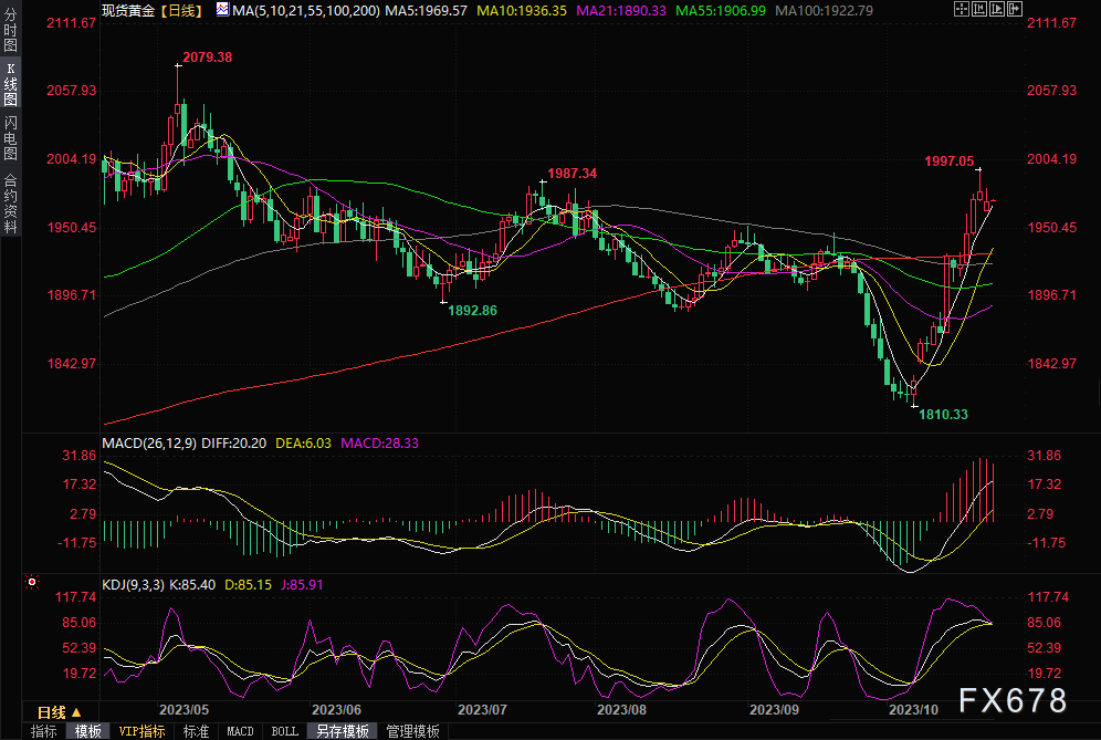 分析师在最新报告中写道:“上周美国通胀高于预期,上周零售销售高于预期,增加了美联储11月进一步收紧货币政策的可能性。” “尽管如此,黄金仍保持了前一周的势头,上涨至 1997 美元/盎司。部分反弹可能归因于空头回补,中东冲突升级刺激了避险需求,进一步推动了空头回补。”