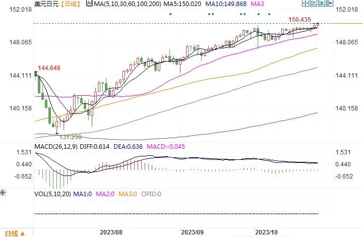 周三(10月25),美元兑日元继续保持在人们密切关注的150门槛附近,当日尾盘阶段报149.99。交易商对任何日本当局干预的迹象还是保持着警惕。随着全球利率上升,日本央行改变其债券收益率曲线控制政策的压力越来越大。路透本周援引消息人士的话报导称,在下周的政策会议之前,日本央行正在讨论上调三个月前设定的现有收益率上限的可能性。该消息人士说。“如果没有发生,日元/美元很有可能很快就跌至150以上。”一直处于高位整理之中的美元/日元下阶段将往哪个方向走,似乎在等待在下周日本央行会议结果。近两个交易日内,150水平有不少保护性期权到期,但预料对该货币对的波动影响作用有限。当前更应关注向下走的风险,下方初步支撑在1.4917,进一步在1.4845。