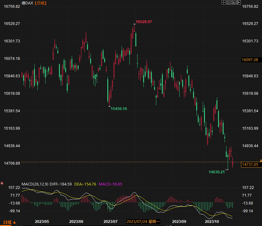 德国DAX30指数收盘下跌160.23点,跌幅1.08%,报14731.95点;