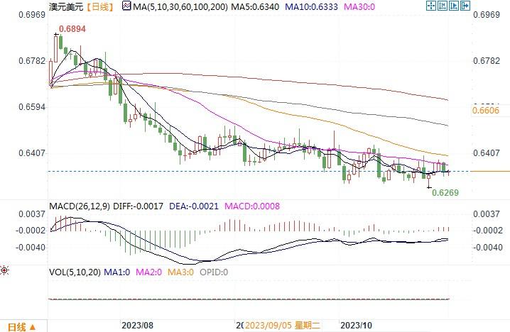 周二(10月31日),澳元兑美元下跌0.4%至0.6346。周二日本央行表示,将1.0%作为日本10年期公债收益率的参考,而非上限,从而使收益率曲线控制(YCC)政策更加灵活。这些举措被视为向政策紧缩迈出的又一步,但力度不如有些人预料的那样大,引发了美元兑日元的空头回补的升势。为此,澳元与其他一干非美货币也受连累出现回落行情。但就澳洲本身而言,澳洲央行仍面临着进一步收紧的压力,因为通胀率居高不下,且消费者表现比政策制定者预计的更具韧性。市场目前暗示,澳洲央行在11月7日将4.1%的指标利率上调25个基点的可能性约为60%,这将有可能结束四个月来的稳定决策。在澳元利率有可能再度被调升的预期加持之下,料澳元当前尚不至于陷于大幅走溃的境地。日内还需密切留意美联储10月份利率会议将会释放出何种信息。近期澳元/美元走势大概率仍偏向于在近期的低位区间(0.62-0.64之间)横盘震荡。
