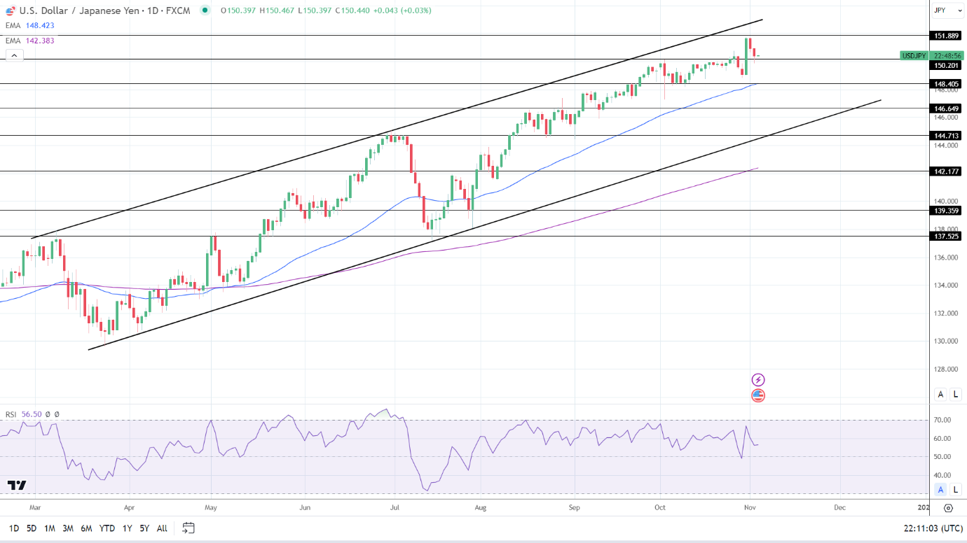 周五(11月3日)亚市早盘,美元/日元紧握150.40方向盘,日本收益率曲线控制(YCC)政策的调整,以及推出17万亿日元经济刺激计划,支撑日元施压卖盘。这也表明,日本“出手”转向紧缩的可能性越来越响亮。