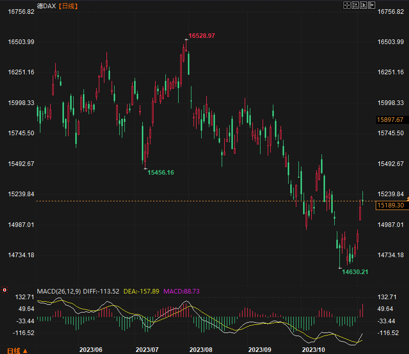 德国DAX30指数收盘上涨46.20点,涨幅0.31%,报15189.80点;