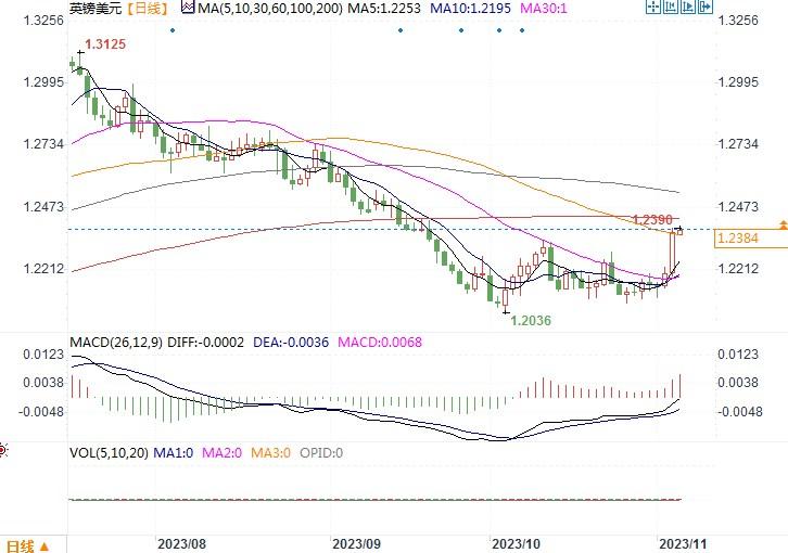 英镑兑美元日线图北京时间11月6日15:11 英镑兑美元 报 1.2384/85