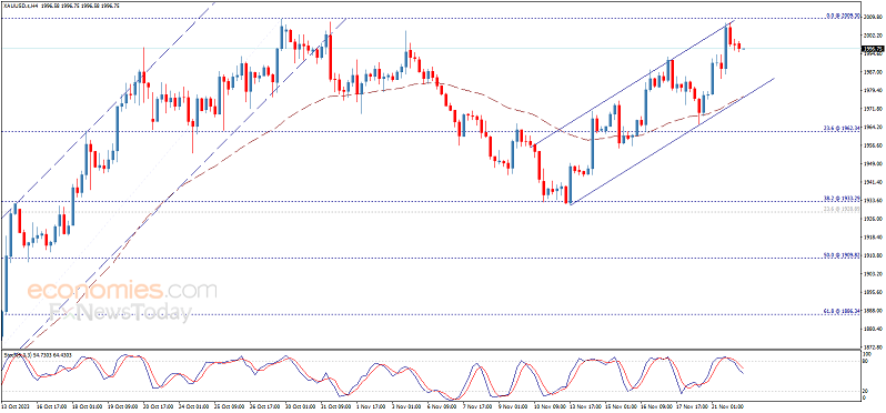 预计今日金价交投将于支撑位1985.00美元/盎司以及阻力位2015.00美元/盎司之间。