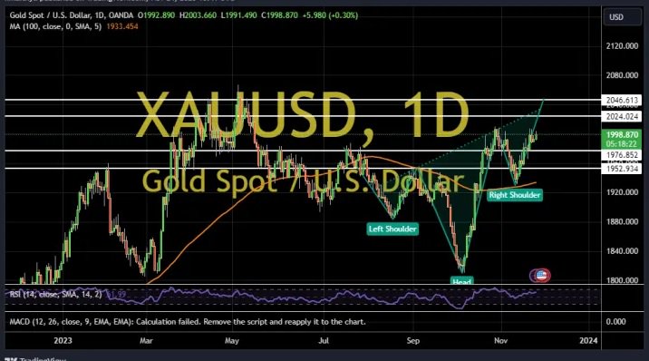 受美元走软推动,上周五金价突破2000美元/盎司,并收在这一重要关口上方。知名财经网站FXDailyReport分析师Nicholas Kitonyi上周五撰文,对黄金后市走势进行分析。