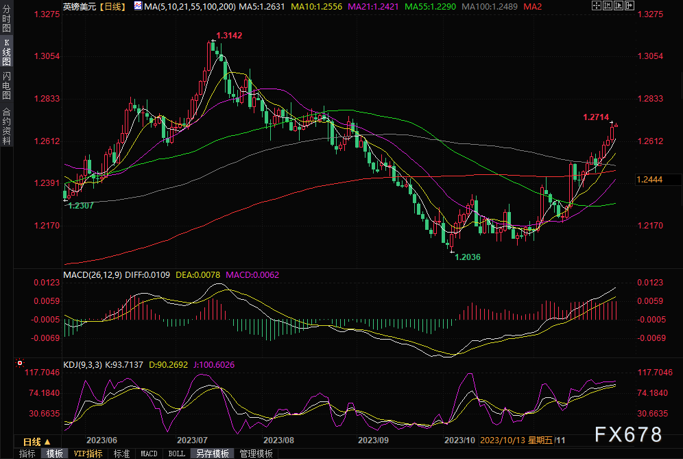 ——周三(11月29日)亚市,英镑/美元汇率维持在近三个月来的最高水平附近,由于弹性数据和长期利率走高的消息的支撑,英镑/美元有望创一年来最大单月涨幅。英镑兑美元周二一度触及9月1日以来最高1.2714,纽约盘尾报1.2685美元,上涨0.4%。