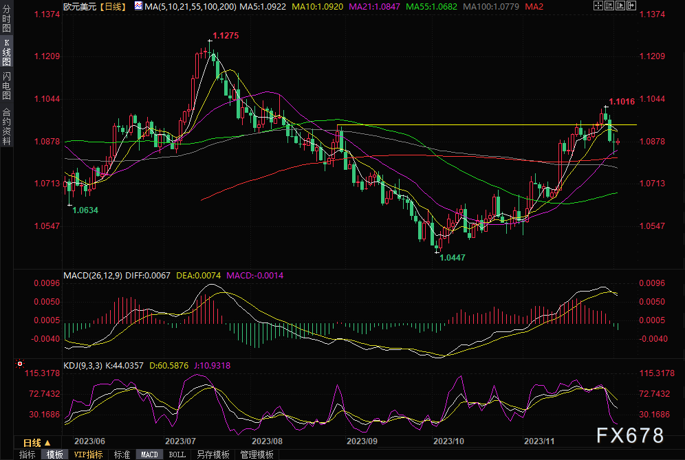 ——周一(12月4日)亚洲时段,欧元兑美元震荡反弹,守住了21日均线支撑,初步结束了连续三天的下跌。由于市场猜测美联储加息周期已经见顶,并将很快放松政策,美元疲软和美债收益率下降推动了该货币对的反弹。