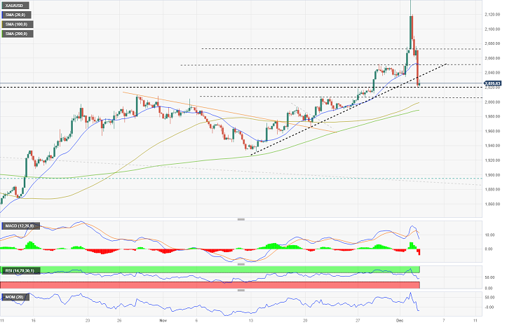 周二(12月5日)亚市盘中,现货黄金在昨日出现惊人波动后温和反弹,金价现报2032美元/盎司附近。FXStreet分析师Matías Salord最新撰文,对黄金技术前景进行分析。