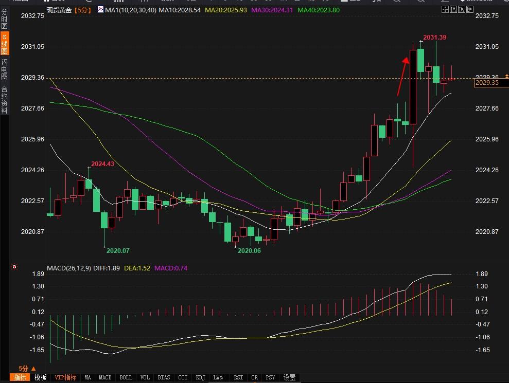 ADP数据公布后,现货黄金短线上扬近8美元,现报2031.13美元/盎司。
