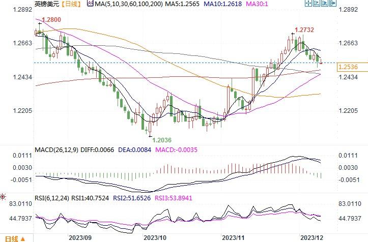 英镑兑美元日线图北京时间12月11日13:06 英镑兑美元 报 1.2536/37。