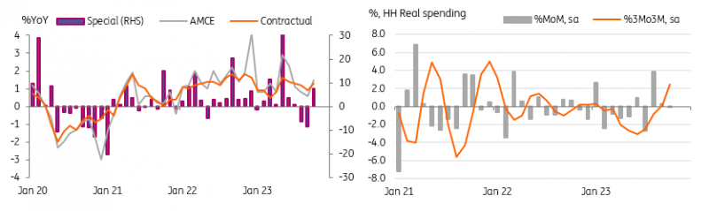 与此同时,第一季GDP从0.9%大幅上调至1.2%,导致全年GDP上调。因此,现在市场预计2023年GDP同比增长2.0%。然而,上周发布的其他数据,包括劳动力现金收入、家庭支出和经常账户,表明第四季经济增长将出现反弹,因此ING认为日本央行将在2024年初改变政策。